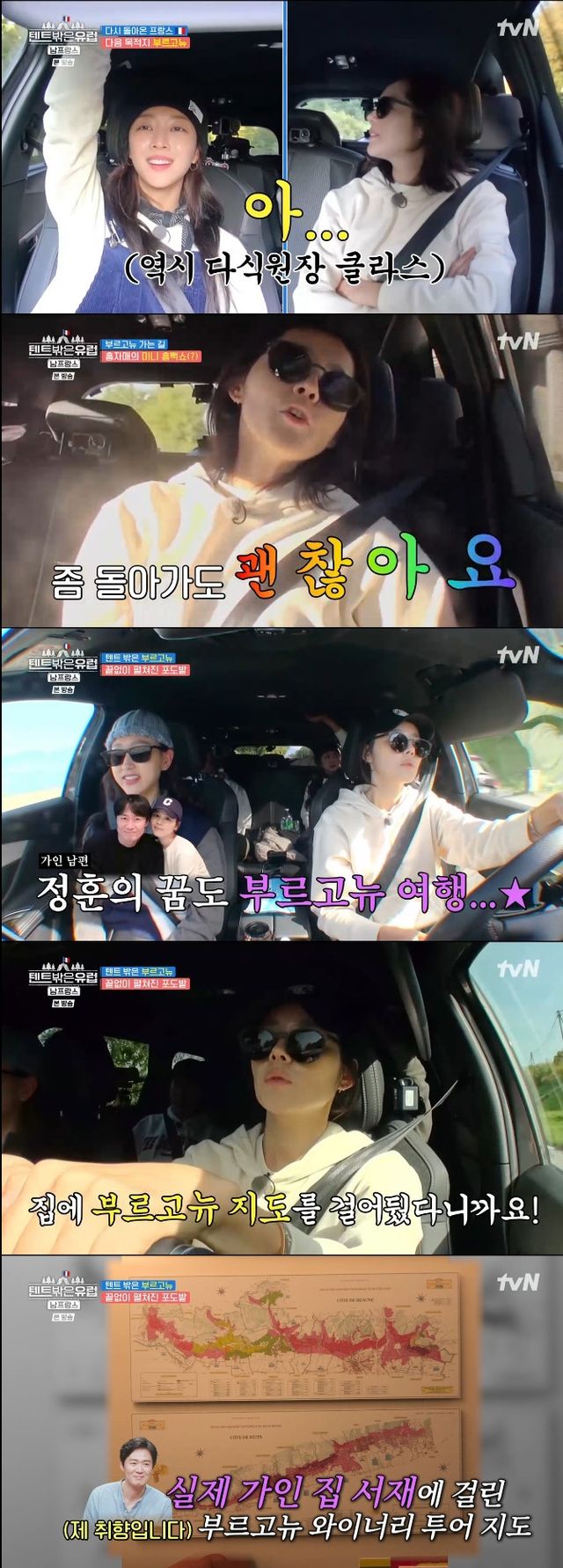 이날 '텐트 밖은 유럽' 멤버들은 패스트 푸드점에서의 식사를 마치고 본격적으로 차를 타고 '부르고뉴'로 향했다.