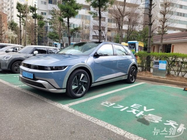 아파트 완속충전기로 충전 중인 신형 아이오닉5. 사진=박경보 기자