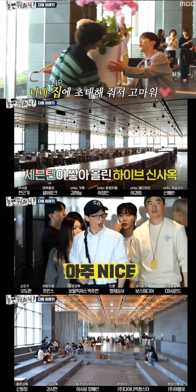 20일 방송된 된 MBC '놀면 뭐하니?'(이하 '놀뭐') 말미에는 하이브를 방문한 멤버들의 모습이 그려졌다.
