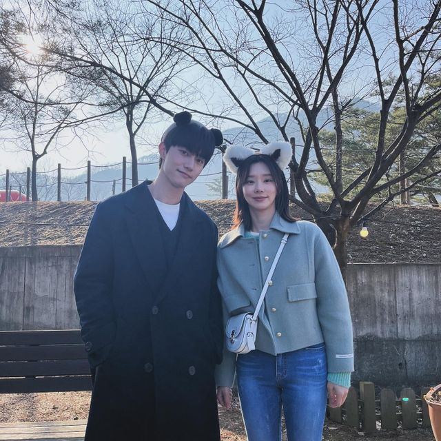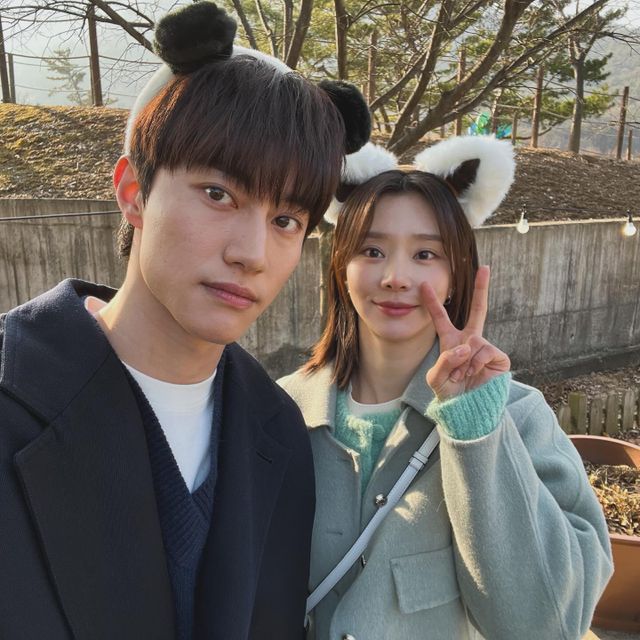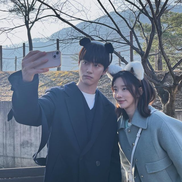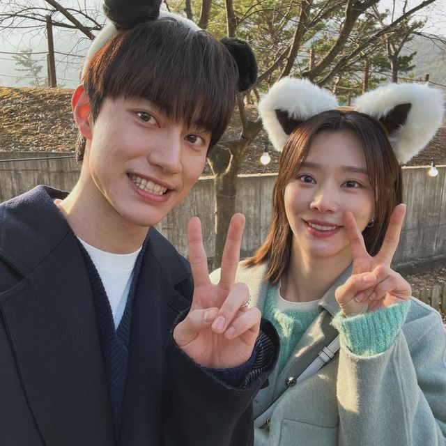 사진 속 이주빈은 곽동연과 동물 귀 머리띠를 하고 환하게 웃거나 브이 포즈를 하며 셀카를 촬영하고 있다.
