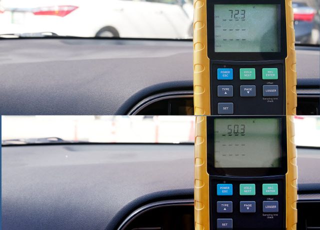 높은 투과율을 유지해 거의 투명한 나노 쿨링 필름은 운전자의 시야를 가리지 않고도 외부 열에너지를 차단할 수 있는 점도 장점이다. 현지 법규를 위반하지 않으면서도 더운 날씨에 실내 온도를 10℃ 이상 낮출 수 있다.