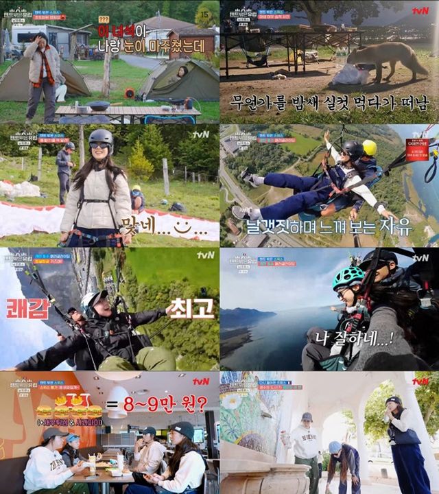 라미란은 하늘 위 고난도 360도 스핀을 선보여 시선을 사로잡았다. 알프호른 연주부터 백패킹 그리고 패러글라이딩까지 유독 이번 여정에서 ‘처음’이 많았던 류혜영은 “폼 미쳤다. 나 패러글라이딩 좋아하네. 나 잘하네”라며 또 한 번 새로운 자신을 발견했다.