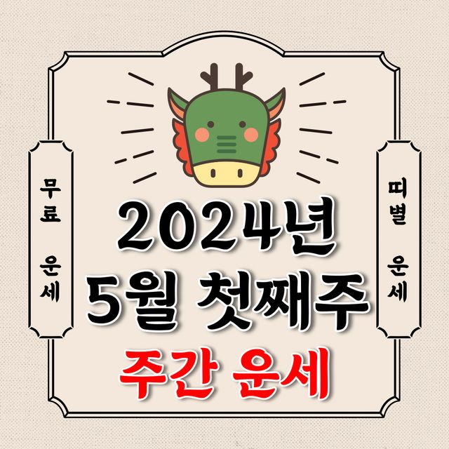 오늘의 운세 2023년 4월 다섯째주 2024년 4월 29일~2024년5월5일(음력 3월 21일~3월 27일 / 주간 운세 / 생년월일 운세)에 대해 알아 보겠습니다.