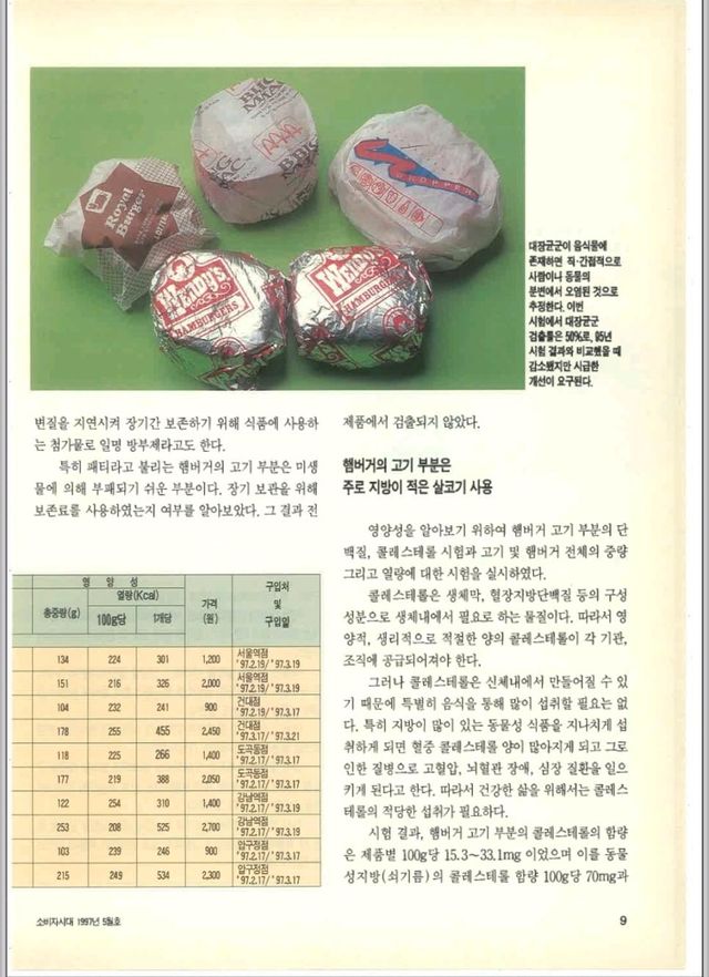 근데 97년 소비자원 자료에는 종이 포장인걸 봐선(2시 방향 이 와퍼)