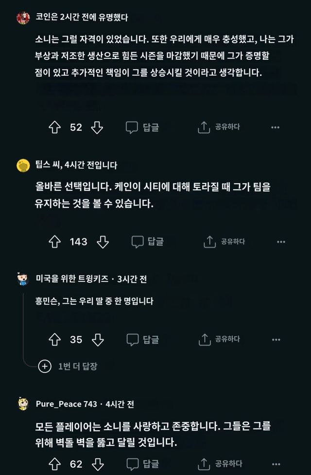 차기 주장으로 손흥민이 거의 유력시 되는 상황인데