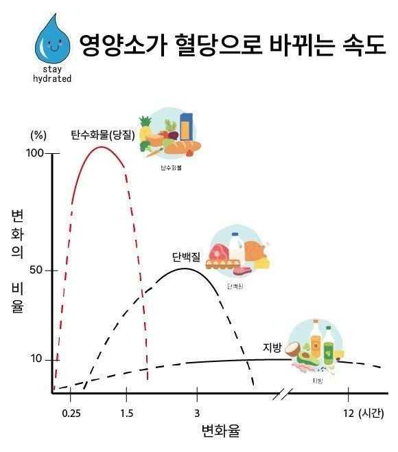 그래프에서 보시듯 혈당 높이는 속도가 지방이 월등이 작구요.