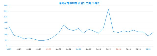 이 차트는 시간에 따른 경복궁 별빛야행의 인기 변동성을 직관적으로 나태내고 있다.