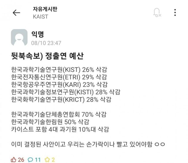 – 윤정부 과학기술 R&D 예산 30% 삭감 ㄷㄷㄷ