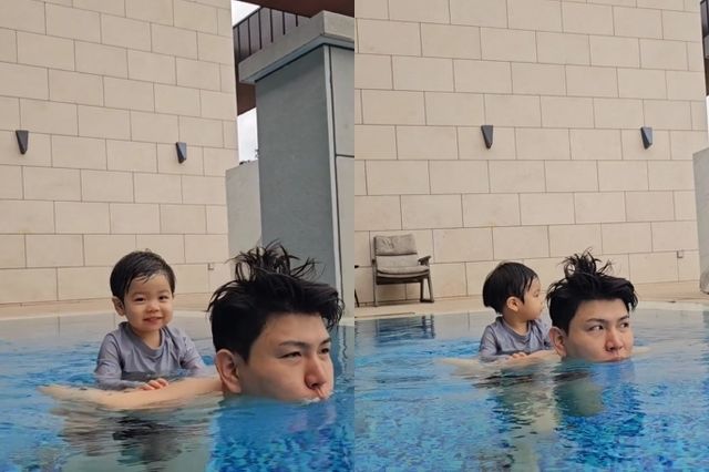 공개된 영상에서는 홍현희의 남편 제이쓴, 아들 준범 군이 함께 물놀이를 즐기고 있다.