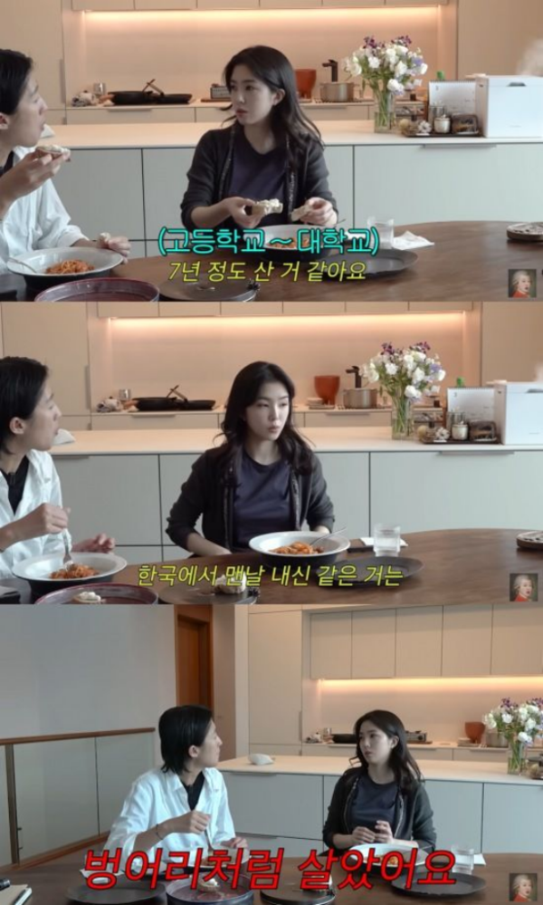 그는 "한국에서의 영어 교육은 주입식 교육이고, 점수 잘 받기 위한 교육이잖냐"며 "한국에서 내신 같은 거는 관리 안해도 될 만큼 문법이나 이런 걸 잘 했다"고 학창 시절을 떠올렸다.