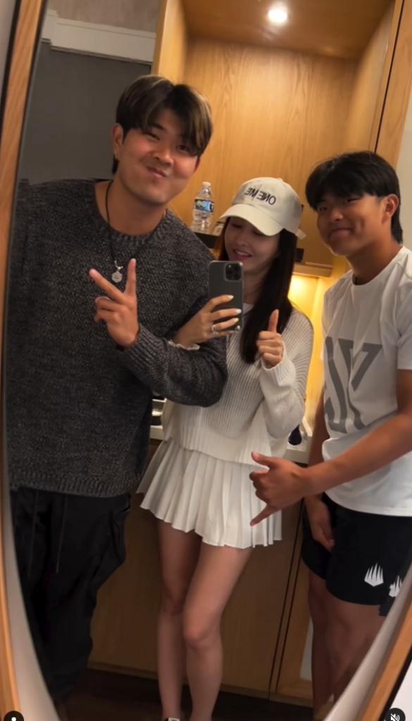 특히 노래방에서 촬영한 아들의 모습에서 아빠 추신수와 쏙 빼닮은 외모가 눈길을 사로잡았다. 두 아들과 나란히 찍은 사진에서 하원미는 42세라는 나이가 믿기지 않는 동안 외모와 늘씬한 몸매를 자랑했다.