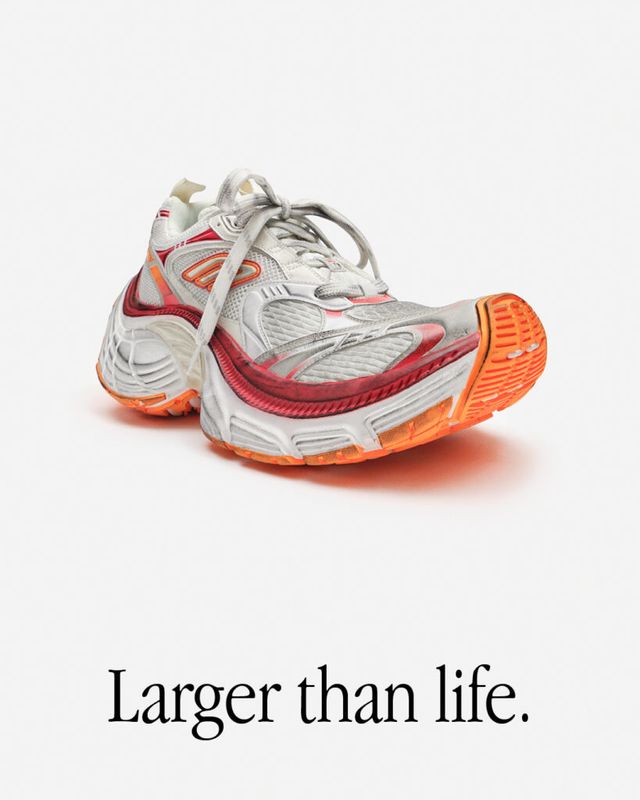 발렌시아가가 왜곡된 실루엣과 비율을 중요시 하는 하우스의 정신을 담아낸 신발, 10XL스니커즈를 선보입니다. 10XL은 스포츠 무드의 스니커즈로 과장된 오버사이즈 형태가 특징입니다. 외형과는 다르게 굉장히 가벼운데요. 측면의 스포티브 B 로고가 힐 방향을 향해 기울어져 있어 속도감이 느껴지도록 디자인했습니다. 남성과 여성 모두 착용 가능하며 화이트-그레이-블랙, 그레이-옐로우, 그레이-핑크-블랙 색상 등 다양한 컬러 조합으로 출시되어 취향에 따라 자유롭게 원하는 색상을 고를 수 있습니다.
