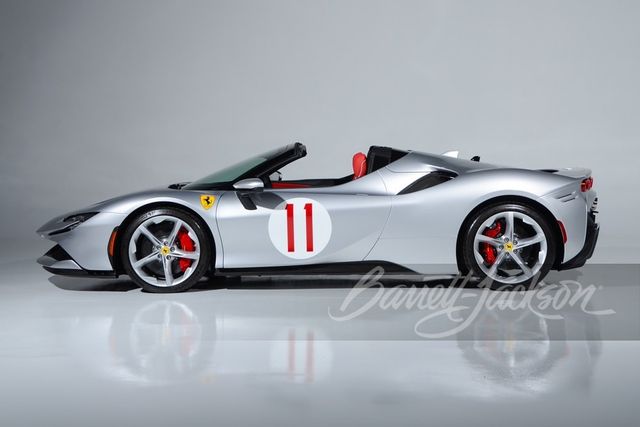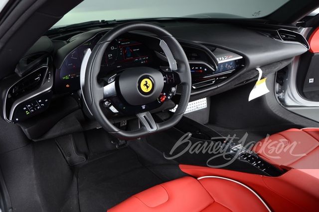 인테리어는 에어브러시 처리된 로고, 실버 특수 플레이트, 화이트 파이핑과 블랙 액센트가 있는 붉은색 가죽이 특징이다. 세상에 단 한 대뿐인 이 SF90 스파이더는 2022년 제작돼 주행거리가 300km에 불과하며, 이번에 배럿-잭슨(Barrett-Jackson)의 팜비치 2024 경매에서 110만 달러(약 15억 원)에 낙찰됐다.