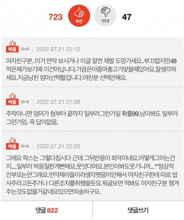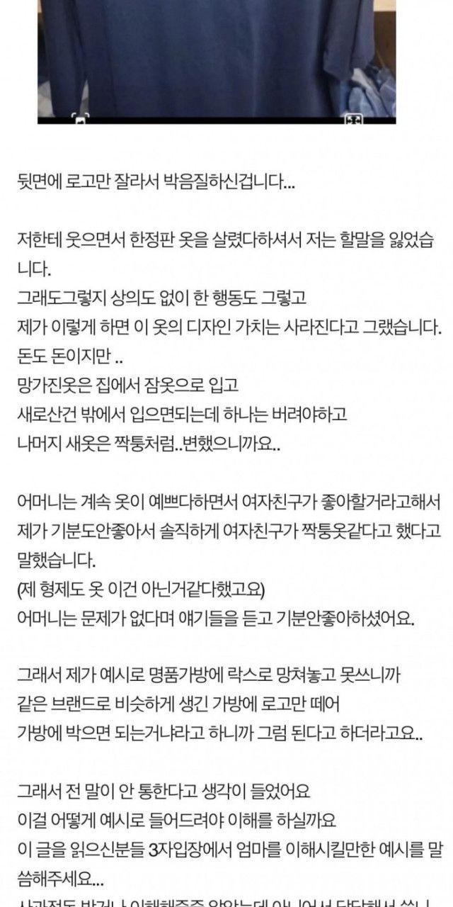 엄마가 여친이준옷 망가뜨리고 뻔뻔해서 화나는데 조언좀