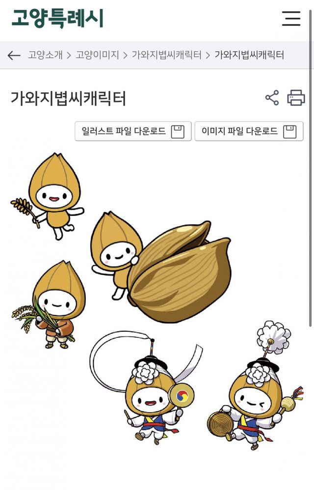 공석이 된 고양시 마스코트 자리는 원래 일산서구 마스코트였던 가와지볍씨가 차지했다