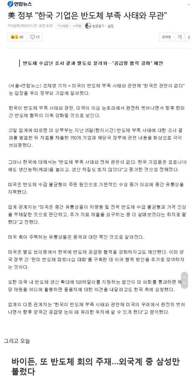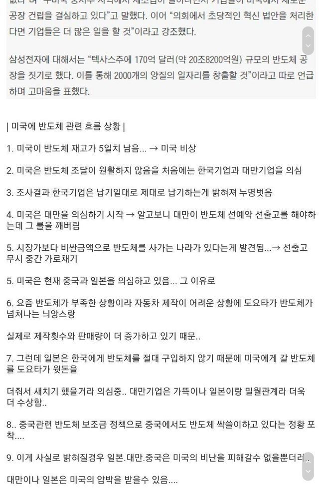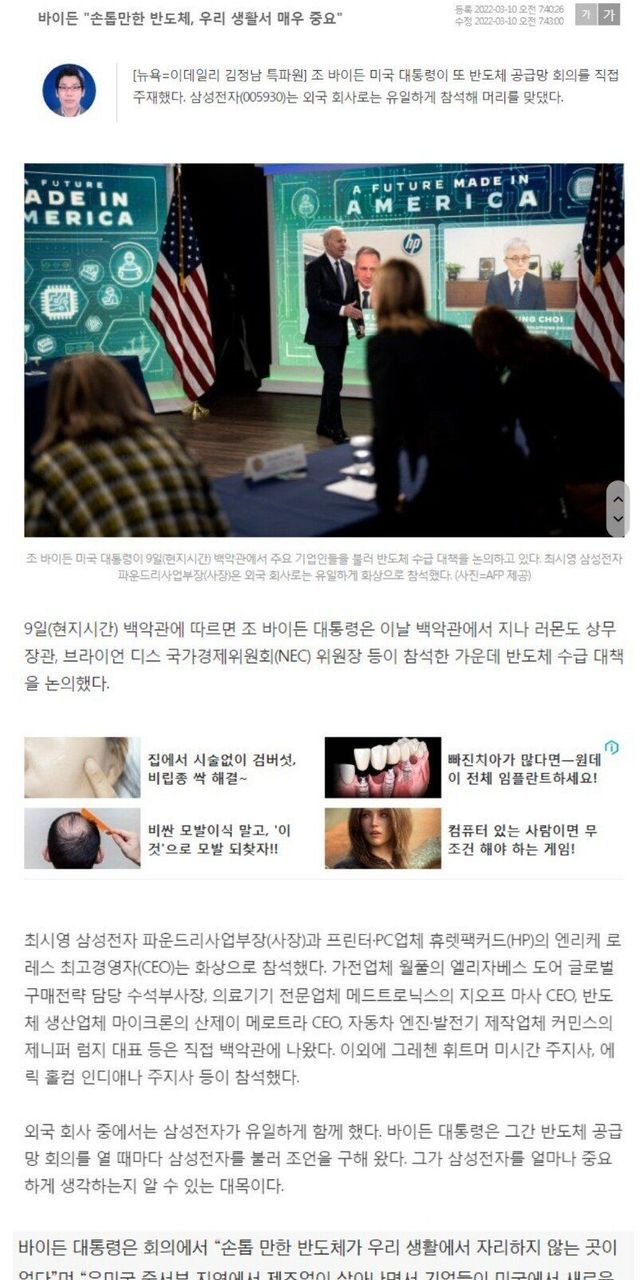 3. 바이든이 미국 반도체회의에 외국계는 삼성만 부름.