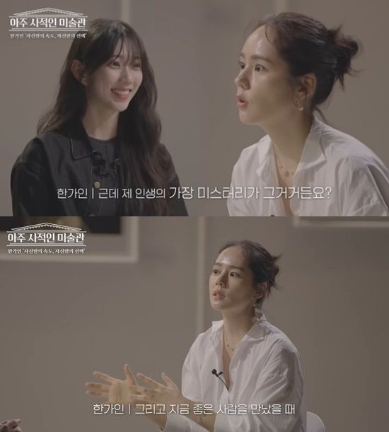 공개된 영상에서 한가인은 "후회가 되는 선택은 없었냐"는 질문에 "제 선택이 모두 베스트였다는 생각은 하지 않는다. 근데 배우가 되지 않고 다른 일을 했다면 또 다른 인생이 펼쳐졌을 것이다. 중간에 되게 힘들다고 생각할 때마다 내가 한 선택이고 당시에 내가 할 수 있는 최선의 선택이었기 때문에 후회하고 싶지 않았다"고 답했다.