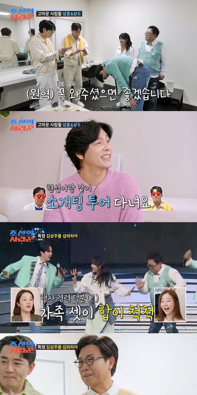 현장에 도착한 세 사람은 '미스터트롯2' 때부터 살뜰하게 원혁을 아껴준 안성훈·나상도와 만나 회포를 풀었다. 청첩장을 전달받은 안성훈은 "나상도의 짝을 찾는다"며 도움을 구했다. 이에 최성국은 "그러면 나상도 씨, 다음부터는 (심)현섭이랑 같이 다니는 걸로..."라며 너스레로 웃음을 선사했다. 이어 세 사람은 배우 이동준·재하·박서진·박성온·박지현·최수호 등 수많은 인연들에게 청첩장 전달을 마쳤다.