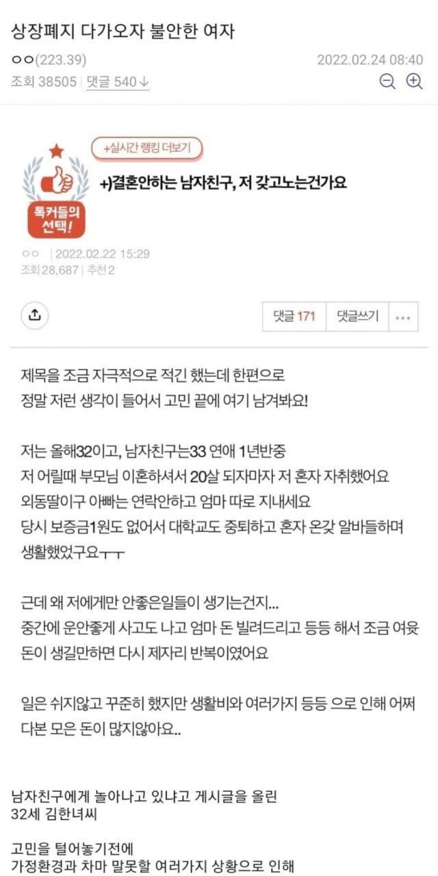 남친이 당장 결혼 생각이 없어 조급한 32세 판녀 ,,
