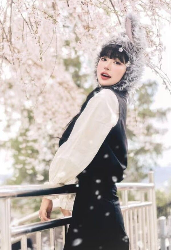 공개된 사진 속 최준희는 토끼 모자를 쓴 채 카메라를 응시하고 있다. 특히 벚꽃잎 사이로 비치는 햇살 아래 밝은 미소를 지으며 포즈를 취한 모습은 시선을 사로잡는다.