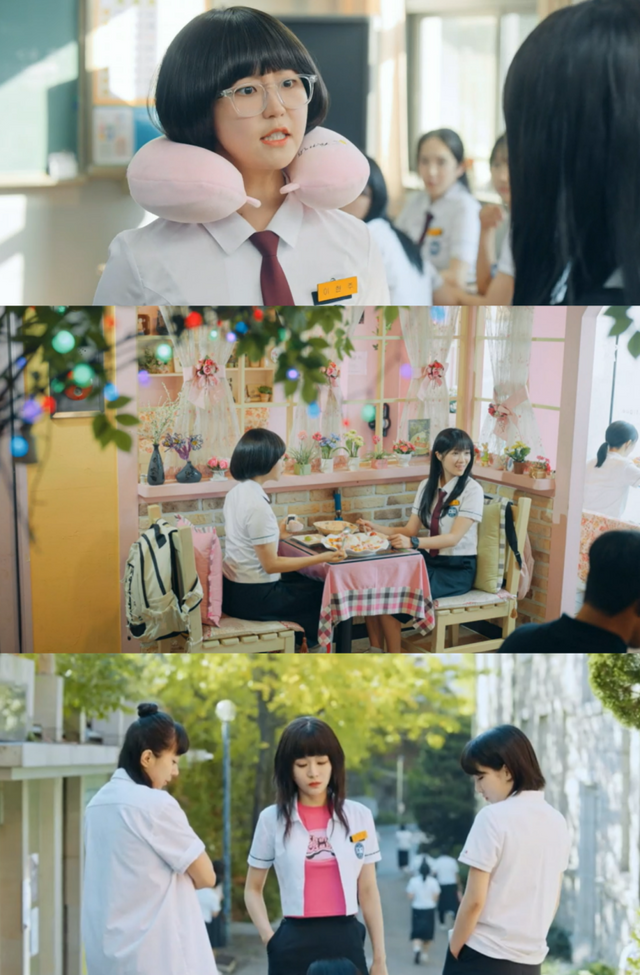 ‘교복 패션’ 또한 눈길을 끌었다. 이른바 ‘서인영 머리’로 불렸던 초코송이 단발 스타일, 눈썹 위로 올라오는 짧은 앞머리에 샤기컷, 컨버스 신발, 지샥 손목 시계 등 2000년대 중반 유행 스타일과 아이템을 그대로 구현했다.