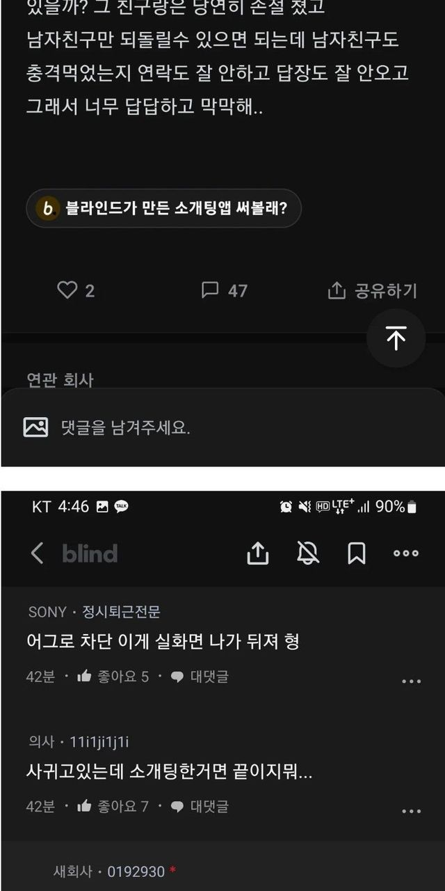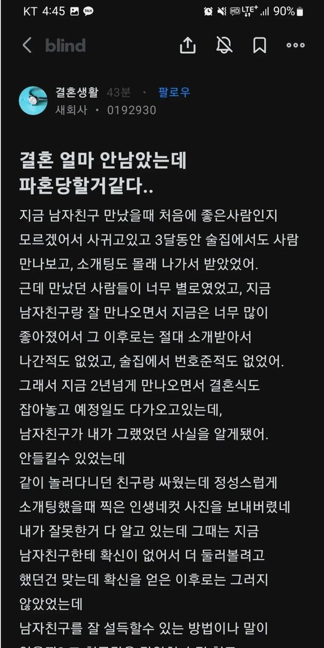 연애초반 소개팅하다 들켜서 파혼각인 직장인