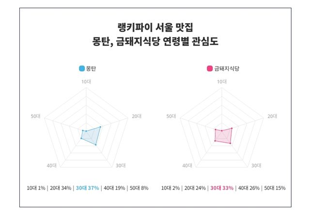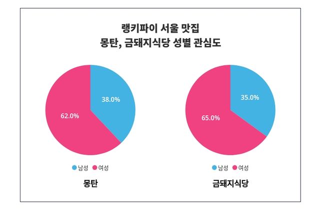 성별 관심도 부문에서 몽탄의 성별 관심도와 금돼지식당'의 성별 관심도가 어떻게 분포되어 있는지에 대한 분석이 공개되었다.