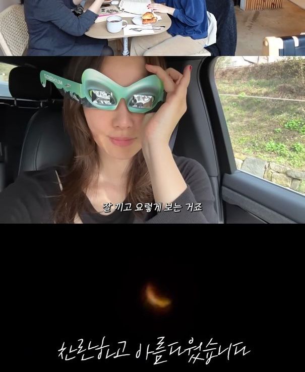 손태영은 "오늘 여기는 개기일식이 시작되어 사람들이 많이 본다고 하더라. 그 기회가 흔치 않고 또 각도도 다르고 그래서 오늘 좀 제대로 볼 수 있는 기회가 온 것 같다"라고 말했다.