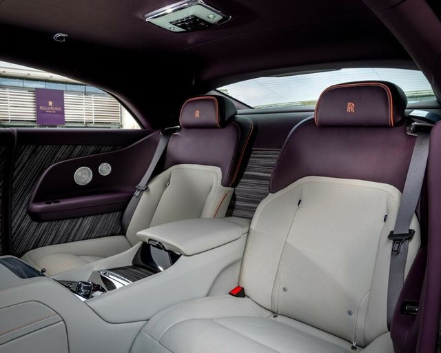 마지막으로 고스트 익스텐디드 익스프레셔니즘은 보라카이 블루 외관과 라임 그린 코치라인으로 개성을 뽐낸다. 21인치 휠은 오빗 그레이 중앙과 라임 그린 핀스트라이프가 특징이며, 화이트 핀스트라이프 타이어가 조화를 이룬다.