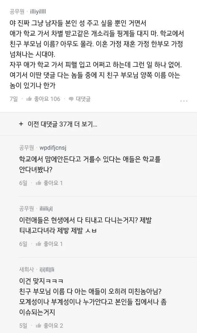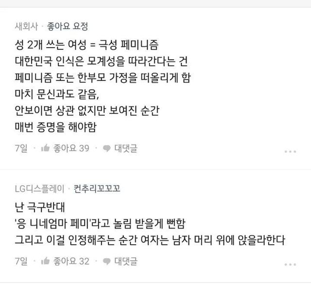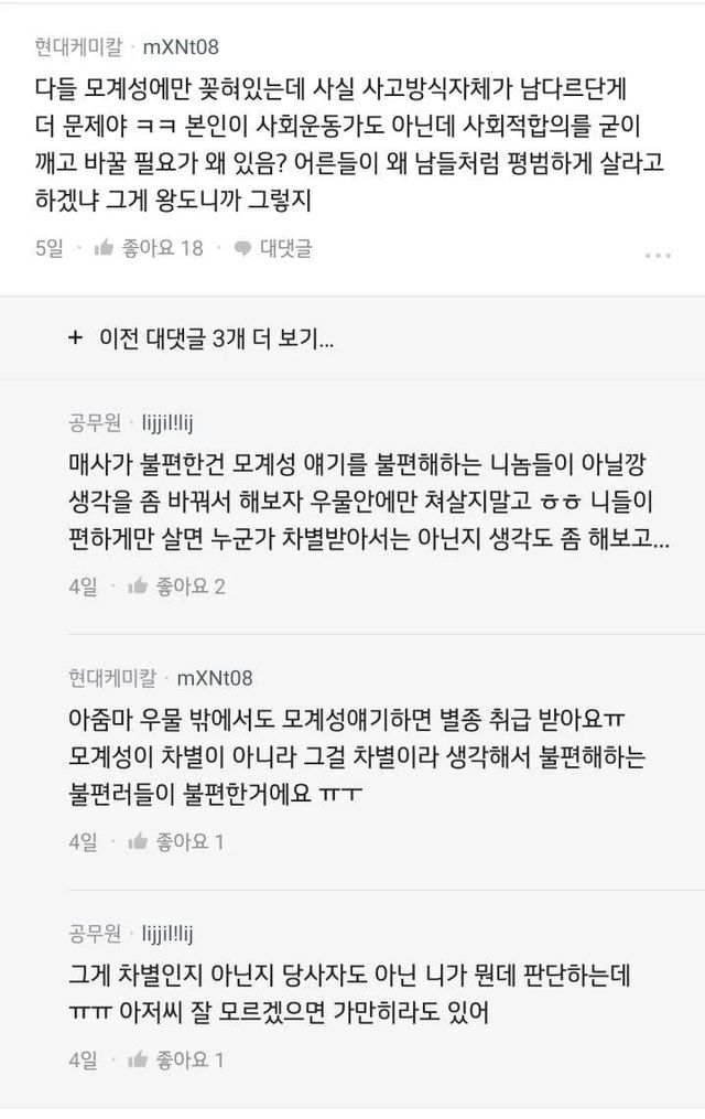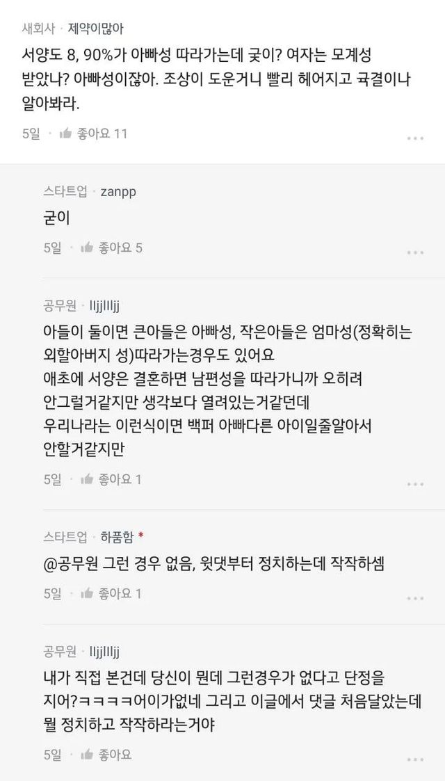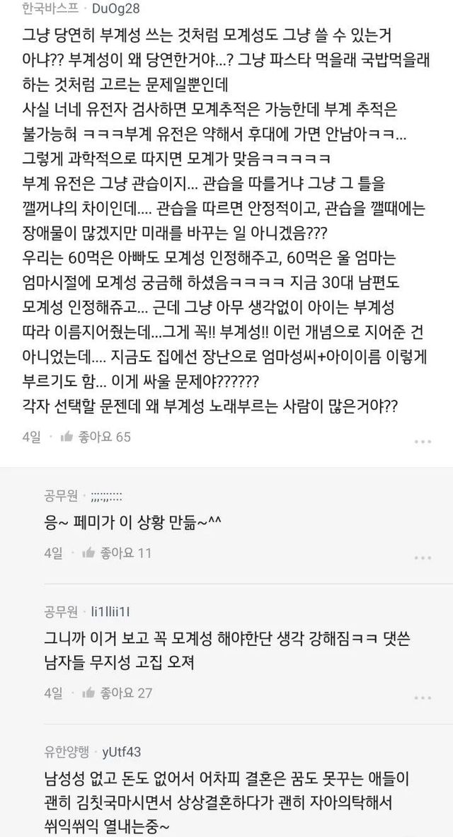 모계성으로 하고 싶으면 일단 자신부터 모계성으로 바꾸고 시작해야 함