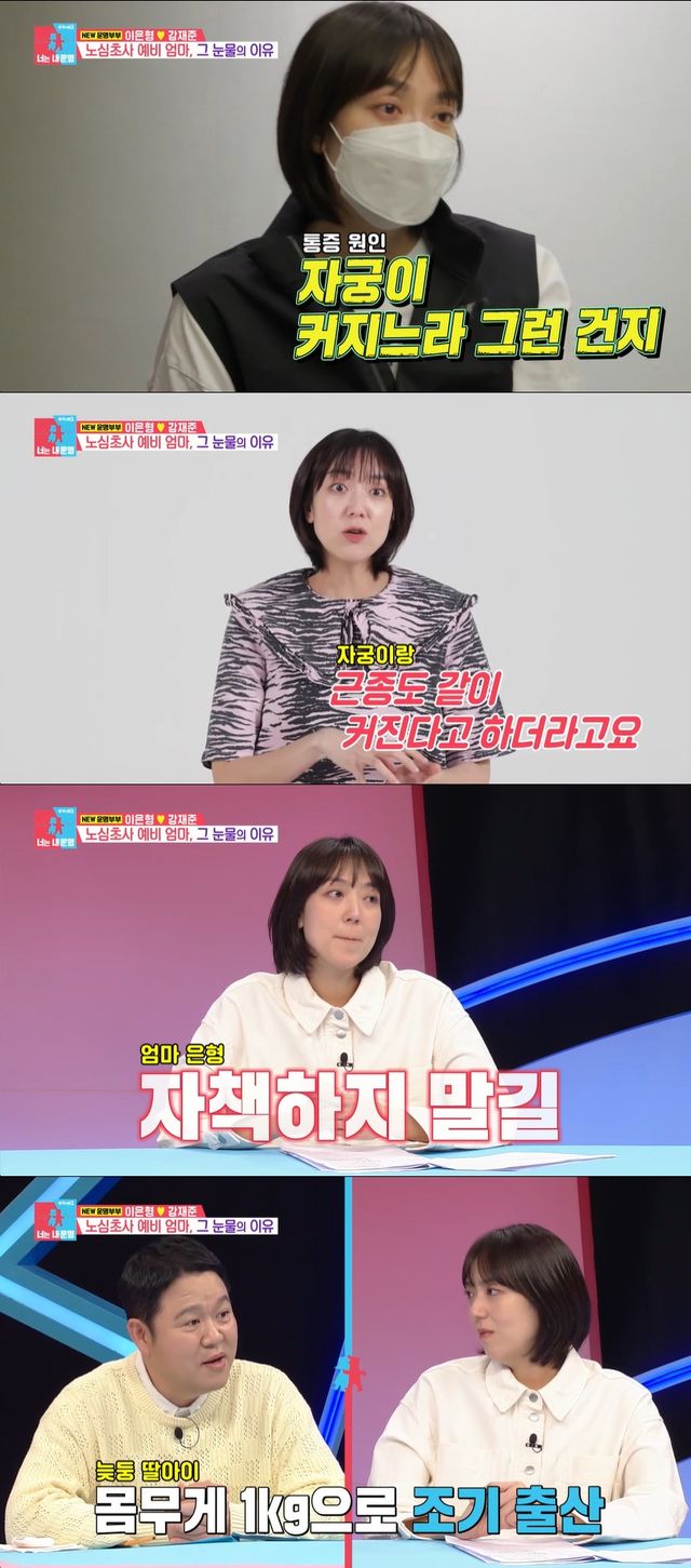 강재준은 "근종이라는 게 산모에게 통증이 올 수 있다고 해서 은형이 걱정이 많이 됐다"라며 혼자 힘들 아내 생각에 괴로웠다고 밝혔다.