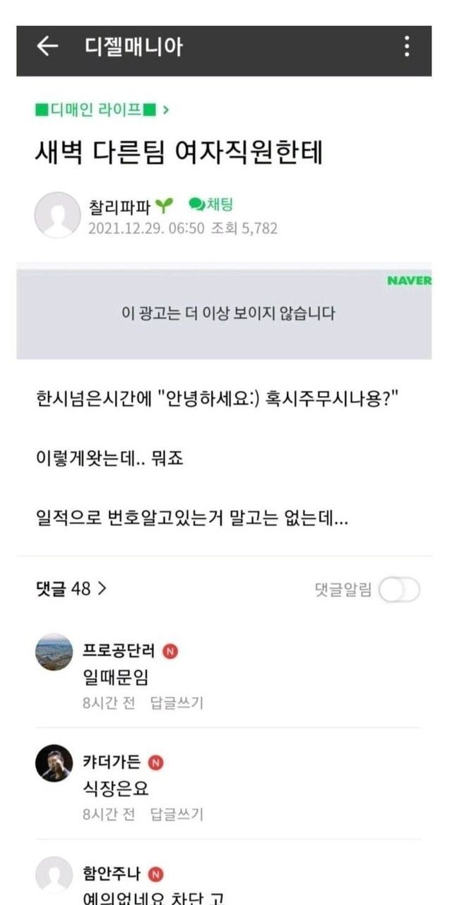 새벽 1시 여직원한테 연락온 디매인.jpg