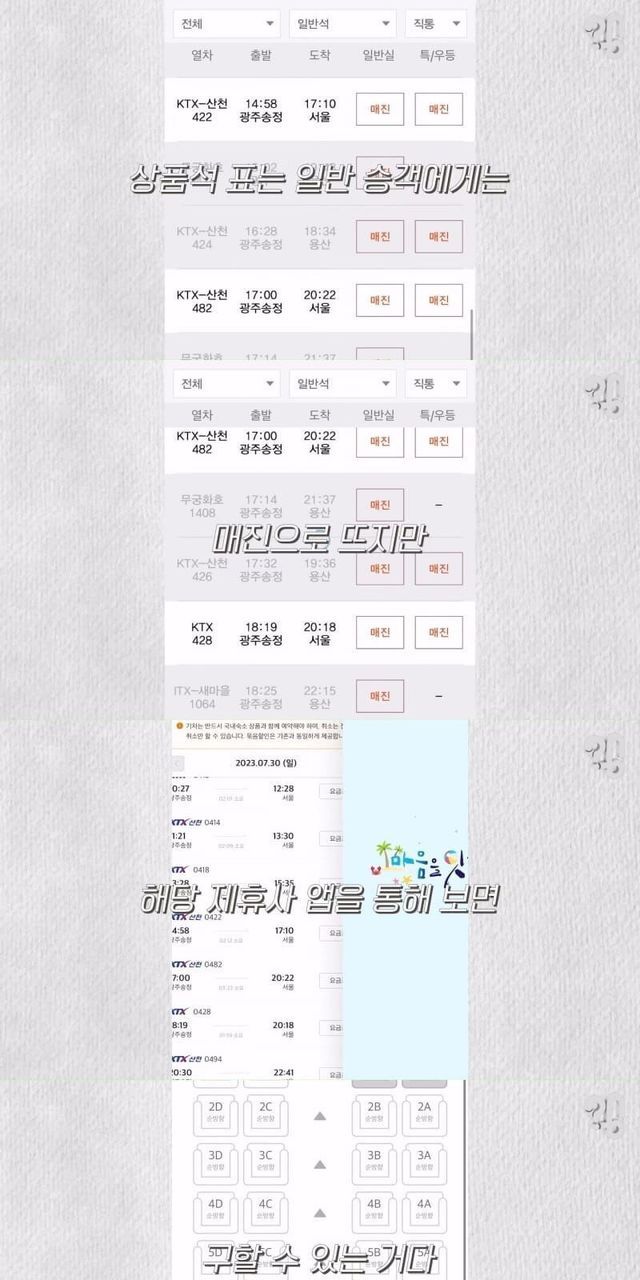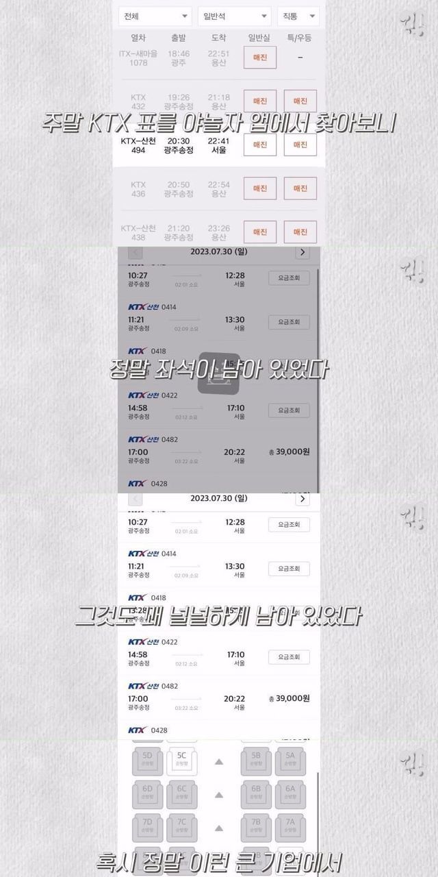 1. KTX 공식 앱에서는 황금시간대 매진인데 야놀자 앱에서는 좌석이 널널하게 남아있음