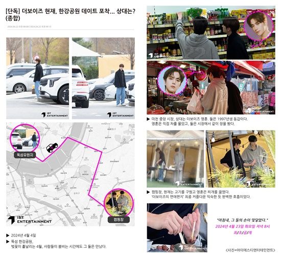 해당 게시물은 파파라치 형식의 열애 보도를 주로 하는 한 연예매체의 기사 스타일과 유사하다. 현재와 영훈이 시장에서 장을 보고 캠핑장에서 함께하는 모습을 사진과 함께 기사 형식으로 담아냈다.