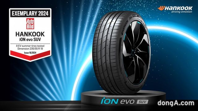 한국타이어 아이온 에보 SUV는 전기차용 타이어 중 최고의 선택지로 꼽혔다. 좋은 다이내믹과 균형 잡힌 주행 성능을 갖췄다는 평가를 받았다. 특히 전기차 주행 성능과 안전에 핵심적인 영향을 미치는 항목인 ▲마른 노면 제동력과 ▲주행 소음에서 1위로 평가됐다.