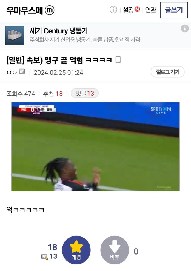 마주 인터뷰 중에 골 먹힌 맨유