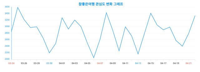 이번 분석을 통해 얻어진 참좋은여행에 대한 일간 변화 추이 차트는, 참좋은여행에 대한 관심이 어떻게 변화했는지를 생생하게 드러낸다.
