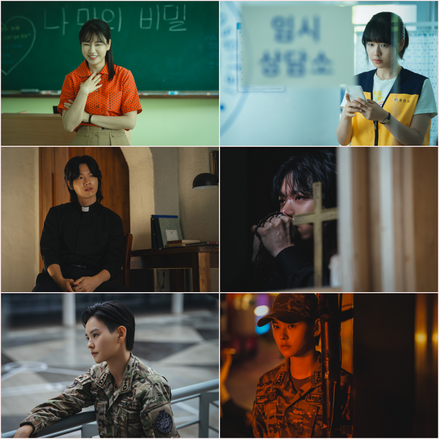 웅천시 유일한 마트 주인 ‘여미령’ 역을 맡은 김여진은 아들을 잃은 슬픔 속에서도 씩씩하게 마트를 운영해 나가는 인물을 섬세한 감정 연기로 완성했고, 오랜만에 만나는 믿고 보는 배우 강석우는 사라진 주임신부 ‘백신부’ 역으로 신도들의 불안과 시청자들의 궁금증을 고조시킨다. 대체 불가의 리얼리티로 등장하는 순간, 캐릭터와 작품에 대한 신뢰를 올려주는 김영옥이 웅천시 주민 중 최고령인 ‘김보애’ 역을 맡아 완성도를 높인다. ‘하율’의 아빠 ‘정수근’ 역을 맡은 박혁권과 ‘소민’의 엄마 ‘오계향’ 역의 백지원, ‘인아’의 엄마 ‘주명옥’ 역의 차화연은 각각 다른 성격과 성향을 가진 부모로서의 면모를 개성 넘치는 연기로 완성해 몰입을 더 할 예정이다.
