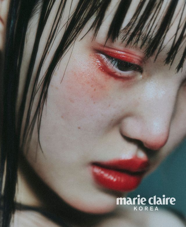 우리 몸이 붉게 물드는 순간 중 가장 마음이 아린 때는 절망이 밀물처럼 밀려든 때가 아닐까. 절망은 사람을 한순간에 무력하게 만드는 감정 중 하나다. 분노보다는 슬픔으로 터져 나오는 눈물을 꾹 눌러 참고, 코끝은 벗겨질 정도로 벌겋게 일어난다. 샤넬 루쥬 코코 플래쉬 #66 펄스를 눈두덩이와 언더 아이래시 라인에 쓸듯 발라 번지게 연출하고, 그 위에 맥 클리어 립글라스를 얹어 젖은 듯한 눈매를 완성했다.