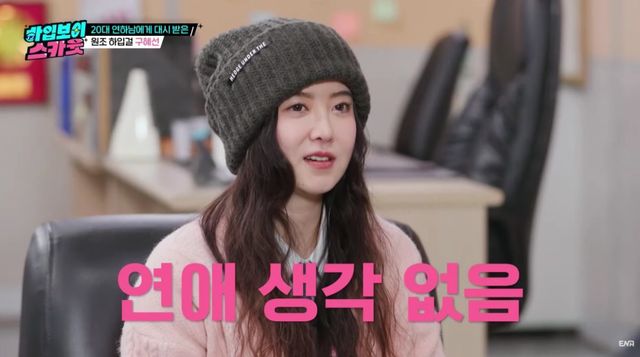 배우 구혜선이 최근 방송된 ENA 예능 프로그램 '하입보이스카웃'에 출연해 연애에 대한 자신의 생각을 밝혔다.