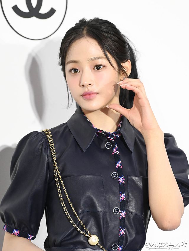 이날 행사에 참석한 뉴진스 민지가 포토타임을 갖고 있다.