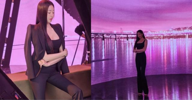 사진 속 김사랑은 46세라는 나이가 믿기지 않는 동안 미모를 뽐냈습니다. 강한 보라색 조명 속에서도 화려해보이지만 청순한 미모를 뽐냈습니다.