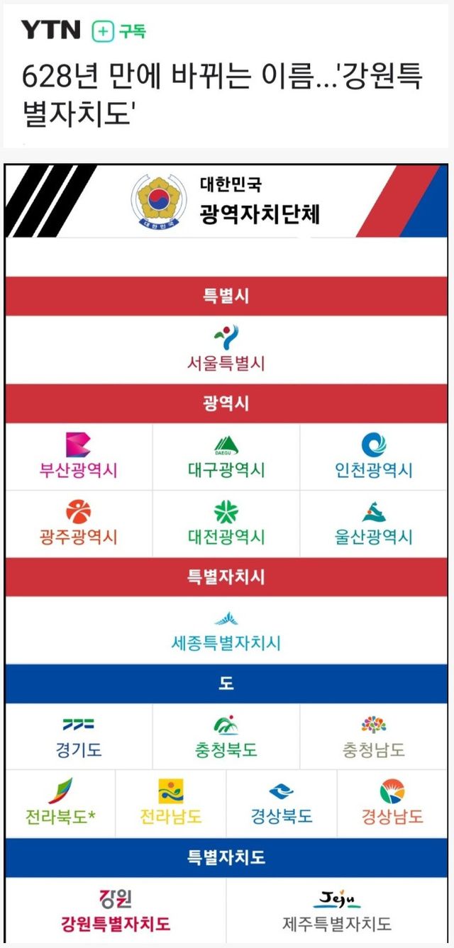 1395년 조선 태조 이성계가 강원도 명칭 정한 이후 628년만에 명칭 변경