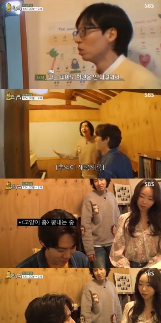 그러면서 유연석은 자신이 칠 줄 아는 '고양이 춤'을 냅다 연주했고, 이에 선생님은 '젓가락 행진곡'을 이야기했다. 하지만 유연석은 어떻게 치는 건지 알지 못했다. 그 때 이광수가 "제가 선생님과 함께 쳐봐도 되겠냐"면서 나섰다.