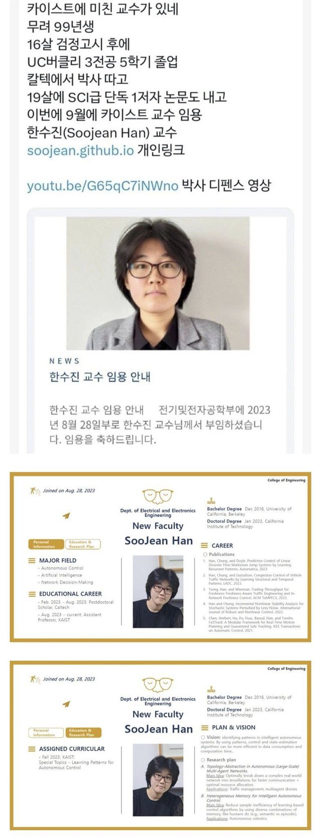 16살 검정 고시 치고 미국 대학교 5학기 (2년 반)만에 졸업하고 박사도 따면서 19살에 논문 써서 게재하고