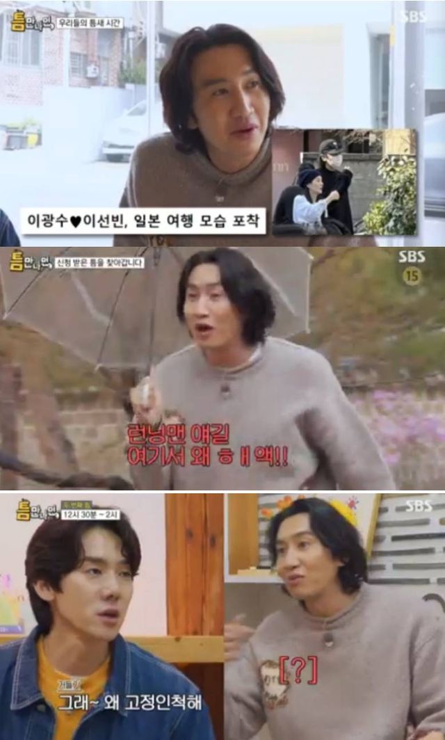 오랜 시간 이광수와 호흡을 맞춰온 유재석은 "'런닝맨'은 왜 안 나오는 거냐", "유연석이랑 소속사가 같아서 끼워팔기로 온 것 아니냐", "이선빈과 연애가 사랑 마케팅 아니냐" 등 방송 중간중간 '틈만나면' 농담을 더해 웃음을 자아냈다.