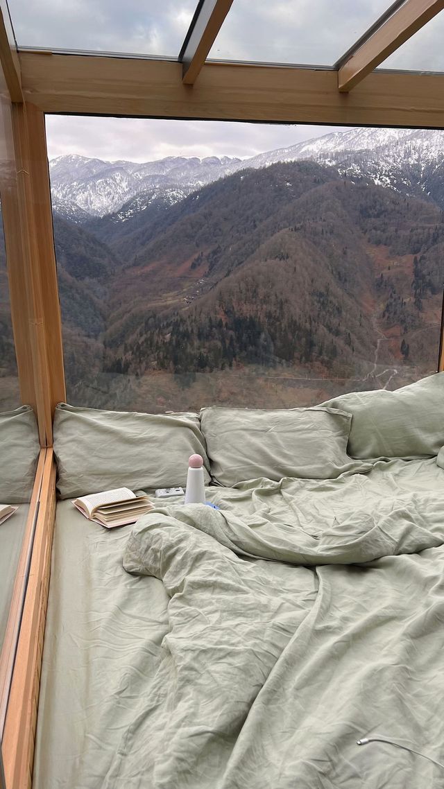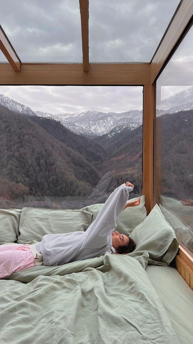 인스타그램에서 문의를 많이 받았던 이곳은 조지아의 메리시 마을에 위치한 에어비앤비 숙소예요. 베딩 브랜드 @bed.threads와의 협업 콘텐츠를 촬영하기 위해 간 곳이었는데, 도착해서 침대에 누웠을 때 정말 꿈만 같았어요. 사진으로 봤던 것보다 훨씬 끝내줬거든요! 이런 숨겨진 보물 같은 장소들을 발견해 낼 때 희열감은 늘 신선한 자극을 줘요. 정말 짜릿해요.