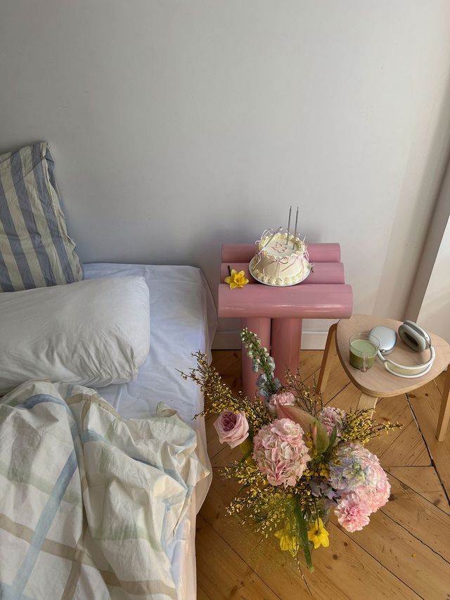 제가 가장 애정하는 리빙 아이템은 렌코의 핑크 컬러 플레이어와 테일러 스위프트 1989 바이닐레코드예요. 오래된 플라스틱 파이프를 리사이클링해서 만든 협탁 테이블도 정이 많이 가는 가구 중 하나죠. 음, 하나 더 얘기해 보자면 룬드 런던의 텀블러! 모아보니 다 핑크네요? 핑크는 역시 기분을 좋아지게 해주는 컬러네요!