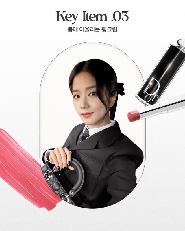 다른 아이템보다 손쉽게 따라 사용해 볼 수 있는 아이템이 있다면 바로 립 제품이 아닐까 싶은데요. 지수의 모던한 룩에 찰떡같이 어울렸던 립 제품은 바로 디올 어딕트 립스틱 #463 디올 리본입니다. 봄에는 다른 계절보다 더욱 핑크 립을 찾는 분들이 많은데요. 올봄엔 지수의 핑크 립을 따라 시도해보는 건 어떨까요? 디올 어딕트 립스틱은 하이드레이팅 샤인 립스틱으로 촉촉한 제형으로 매트한 고발색의 제품보다 부담없이 사용할 수 있습니다. 특히나 요즘 유행하는 탱글탱글한 촉촉립을 연출하기에도 제격이죠. 디올 어딕트 립스틱은 55개의 셰이드로 다채로움을 자랑하는 제품인데요. 디올 고유의 디자인이 케이스에 담겨 패션 액세서리처럼 매력적인 아이템입니다. 게다가 리필까지 가능한 환경 보호를 염두에 둔 제품이라 더욱 눈길이 가게 되는 제품인 것 같습니다.