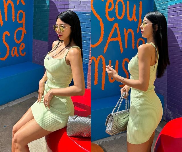 공개된 사진 속 제이제이는 라임 컬러의 끈 나시 원피스를 입고 포즈를 취하고 있다. 완벽한 골반 라인으로 볼륨감 넘치는 콜라병 몸매를 뽐내 시선을 사로잡았다.